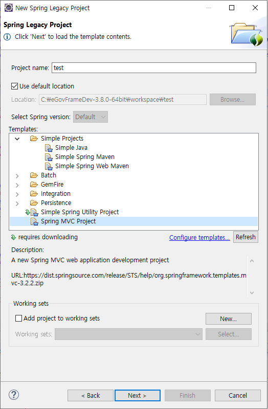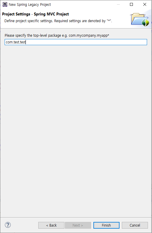 3. Spring MVC Project를 클릭 후 Project name에 원하는 프로젝트명을 입력한다.