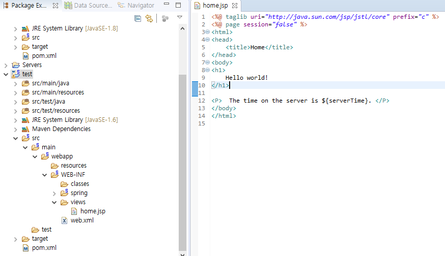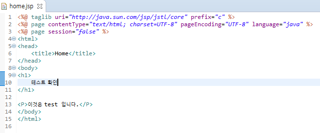 10. 한글이 깨지므로 src - webapp - WEB-INF - views - home.jsp를 확인한다.