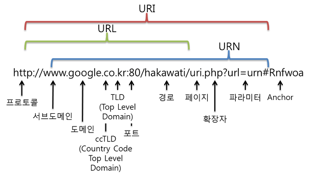 - URI : 특정 리소스를 식별하는 식별자