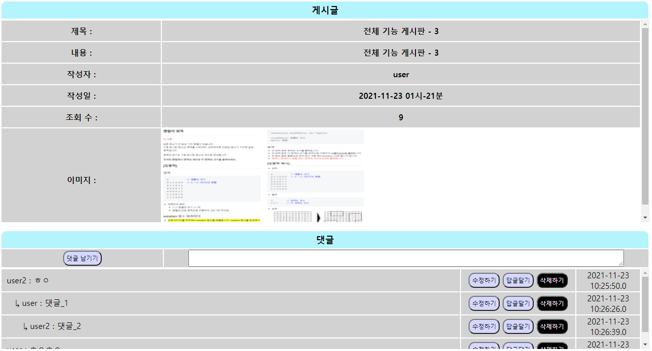 8. 댓글 및 대댓글 추가/수정/삭제 가능